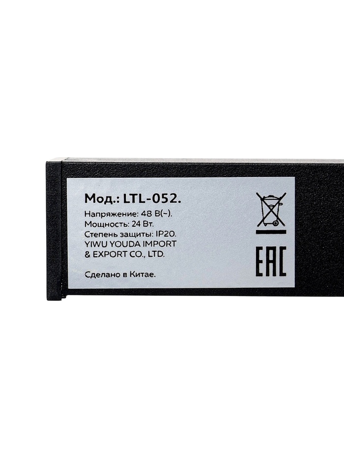 Трековый магнитный светильник, серия "Broad" LTL-052, 24 Вт, 1920 Лм, 48В, 4000K, черный