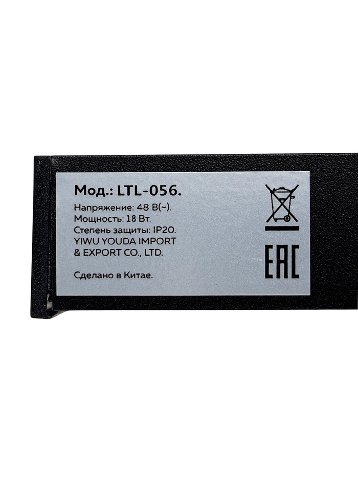 Трековый магнитный светильник, серия "Broad" LTL-056, 18 Вт, 1440 Лм, 48В, 4000К, черный