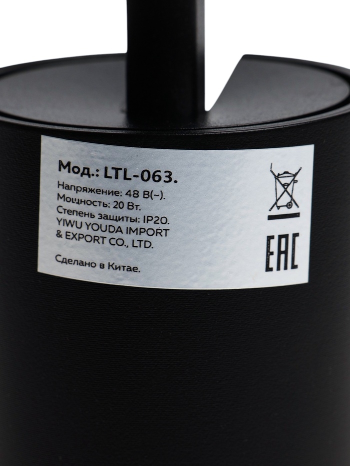 Трековый магнитный светильник, серия "Broad" LTL-063, 20 Вт, 1600 Лм, 48В, 3000К, черный