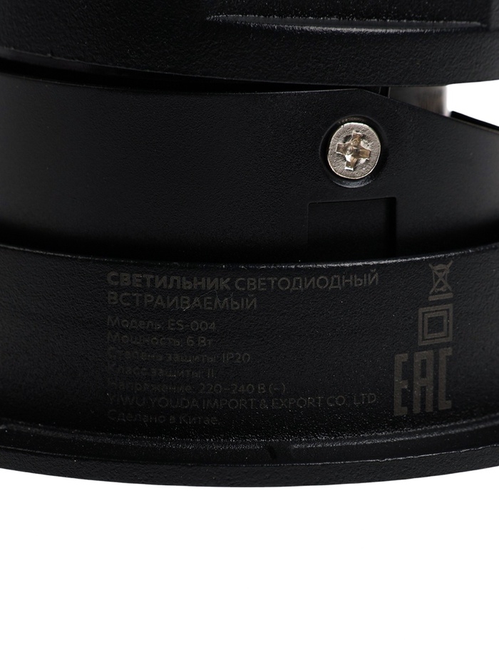 Светильник светодиодный встраиваемый, поворотный, 6Вт, 6500К, с драйвером, D75, черный