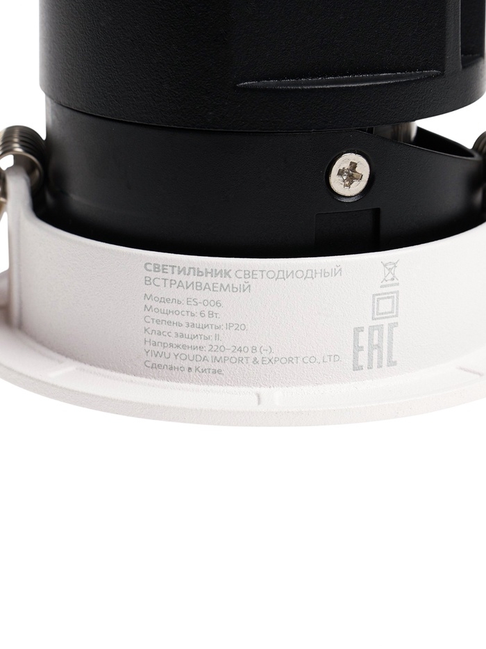Светильник светодиодный встраиваемый, поворотный, 6Вт, 6500К, с драйвером, D75, черно-белый 107130