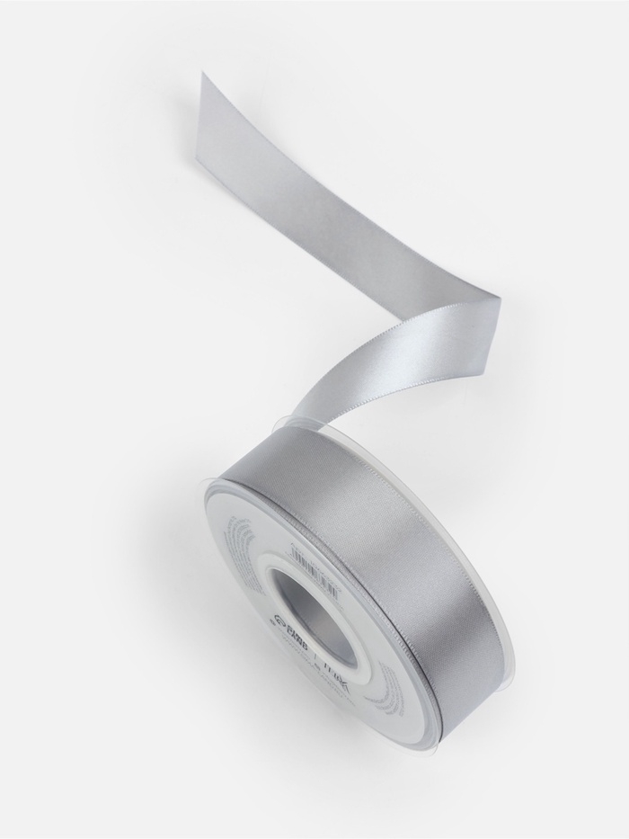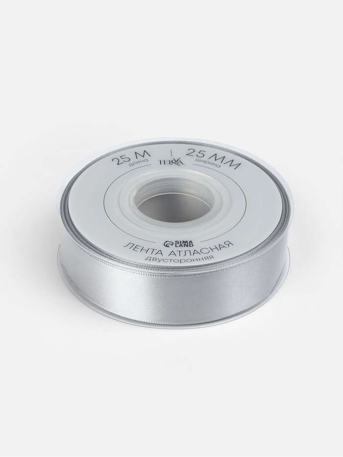 Лента атласная двухсторонняя №837 25мм*25±1м серебряный TR