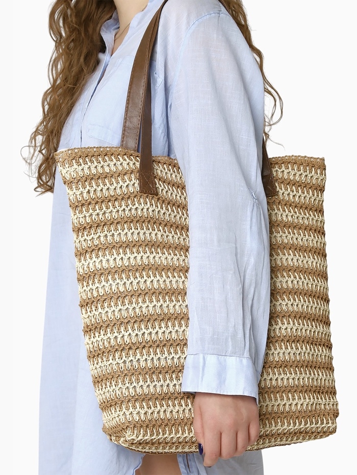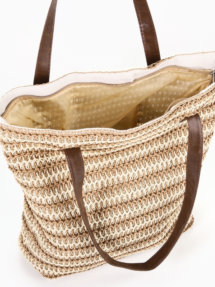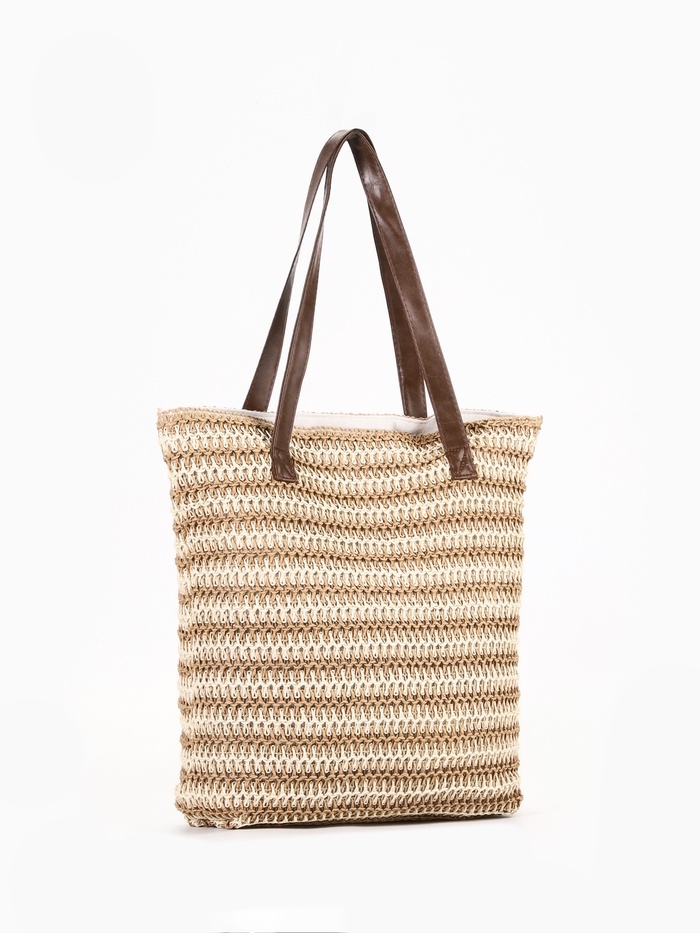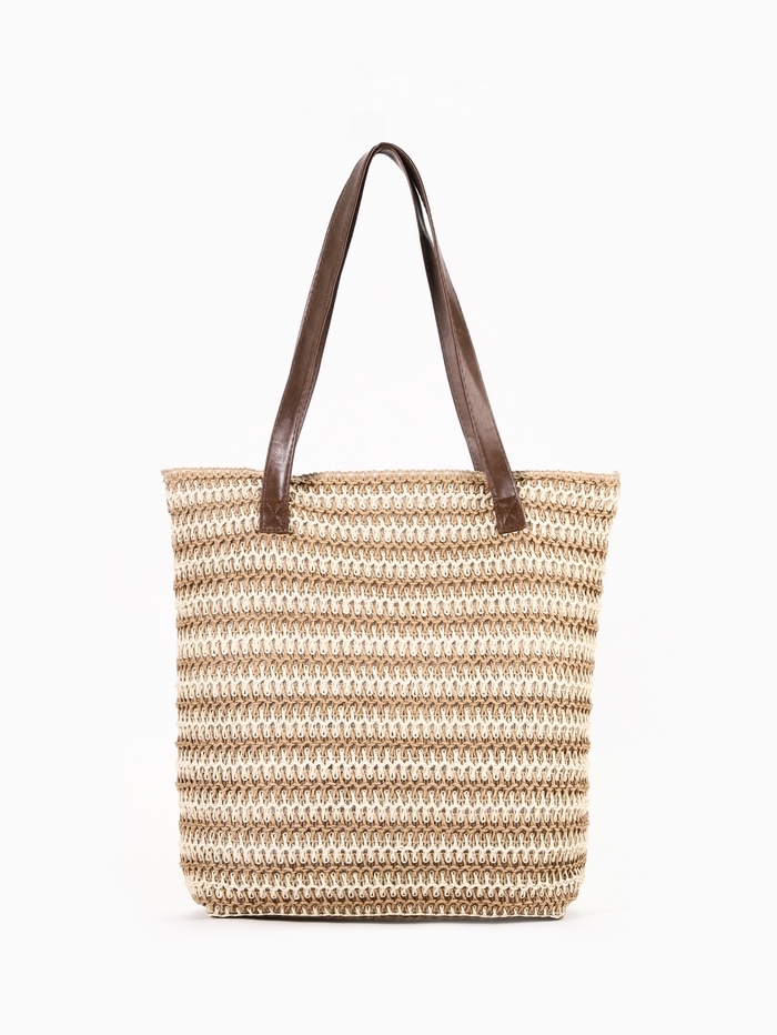 Сумка пляжная Полосы, 45*12*38, отд на молнии, подкладка, беж/коричневый