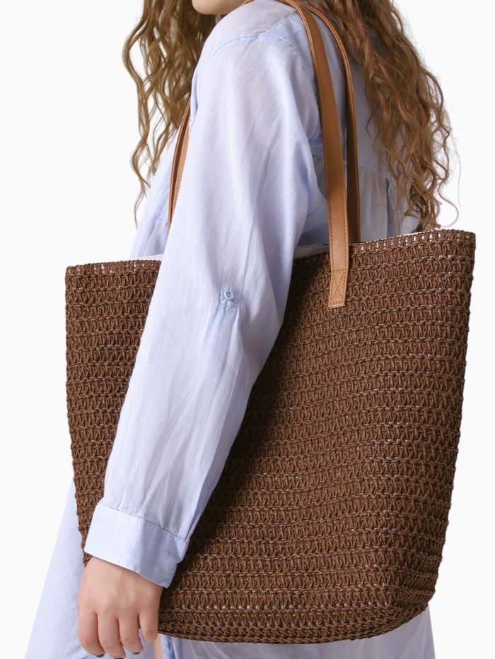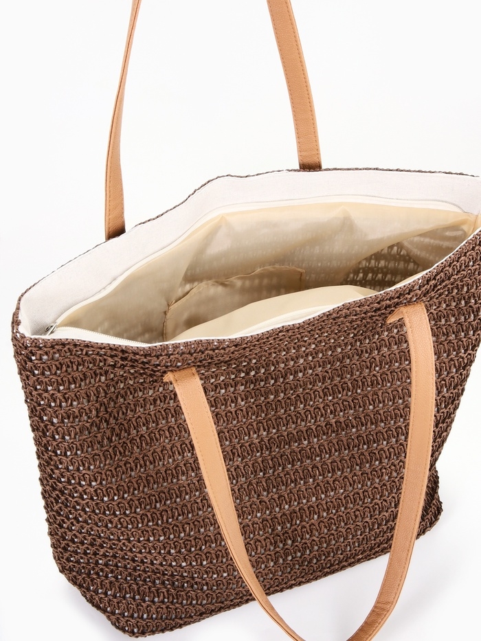 Сумка пляжная Одноцвет, 47*14*35, отд на молнии, подкладка, коричневый