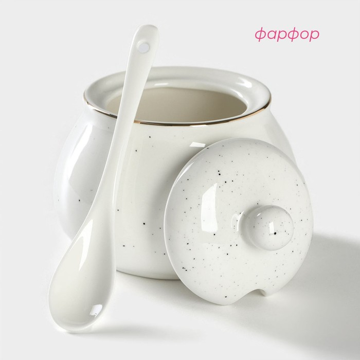 Сахарница фарфоровая с ложкой Доляна «Млечный путь», 330 мл, цвет белый в крапинку