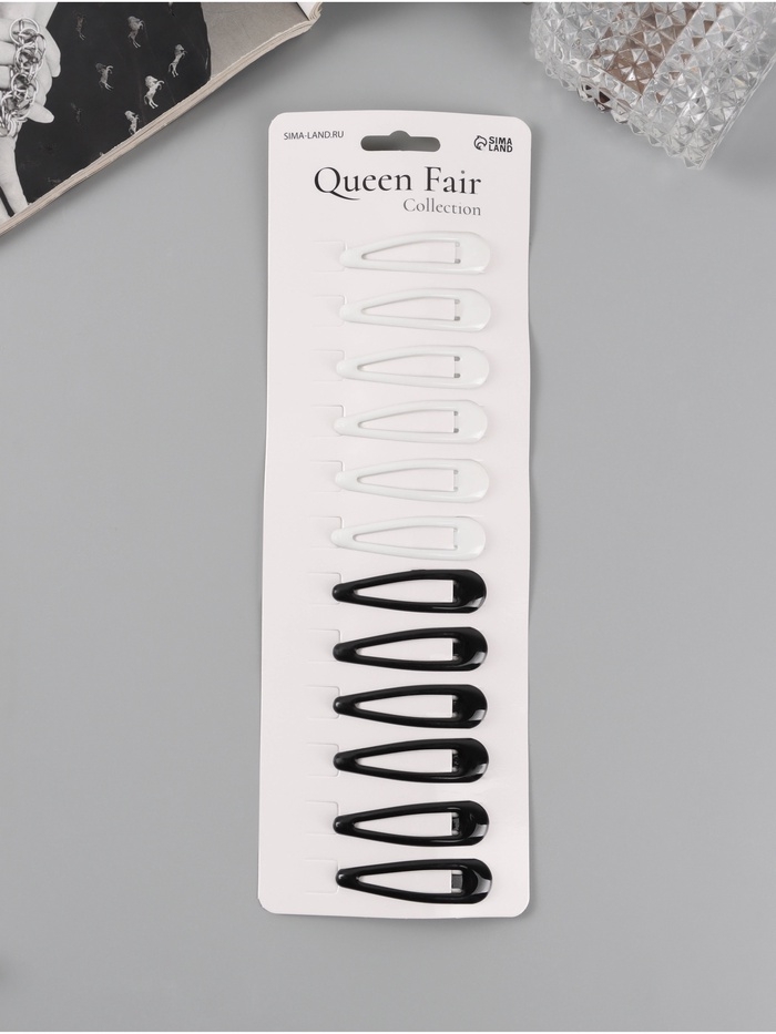 Невидимка для волос "Стиль" (набор 12 шт) классика, 5 см, чёрный белый