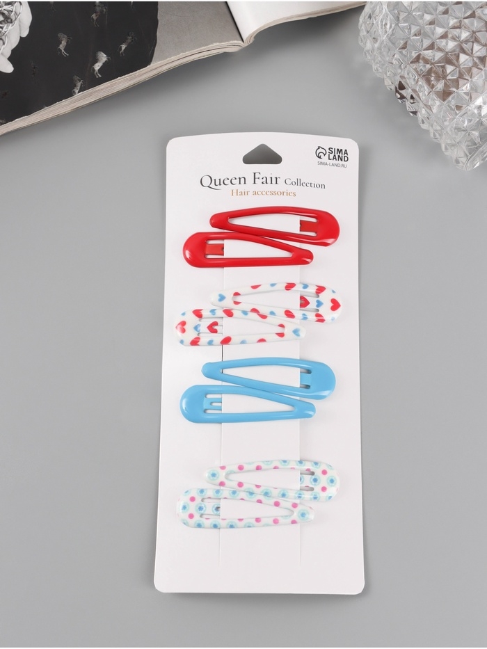 Невидимка для волос "Флора" (набор 8 шт) сердца круги, 5 см, микс