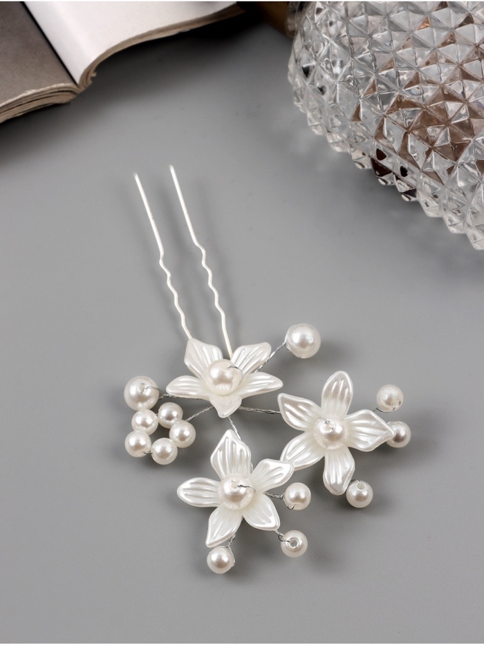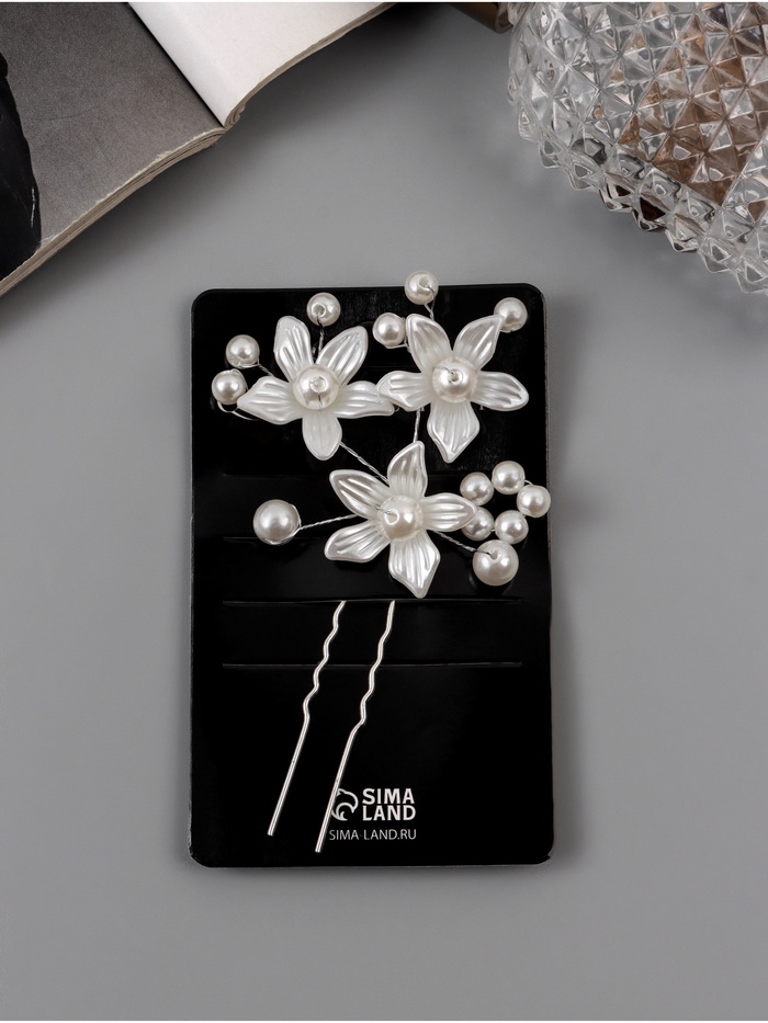 Шпилька для волос "Эмилия" цветы шарики, 8х6,5 см, белый