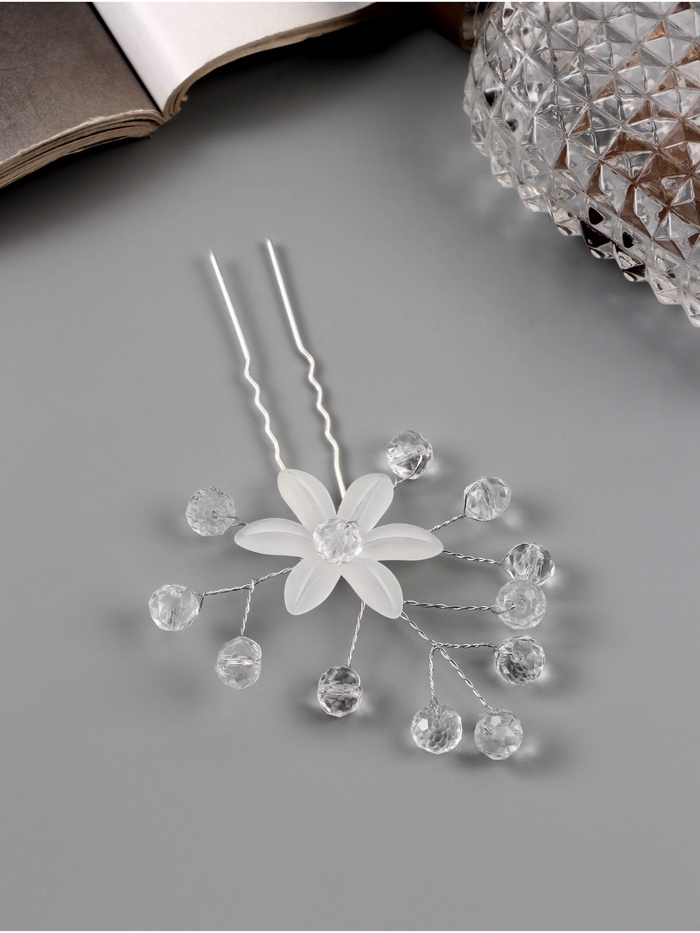 Шпилька для волос "Эмилия" цветок шарики, 9х7 см, прозрачный