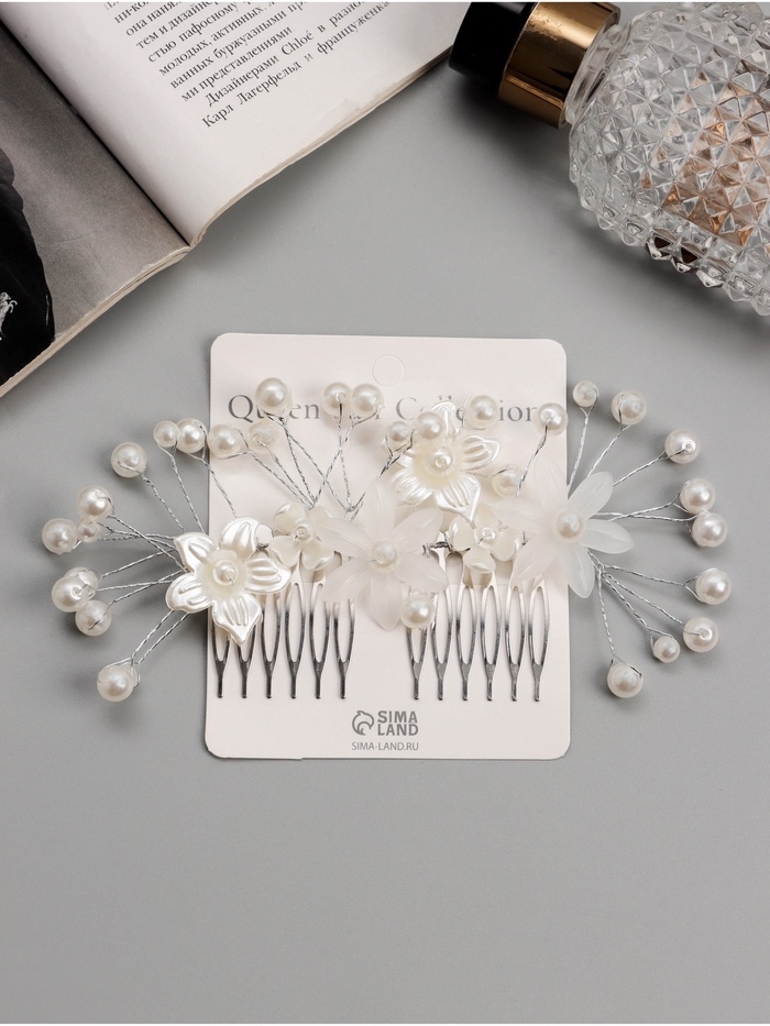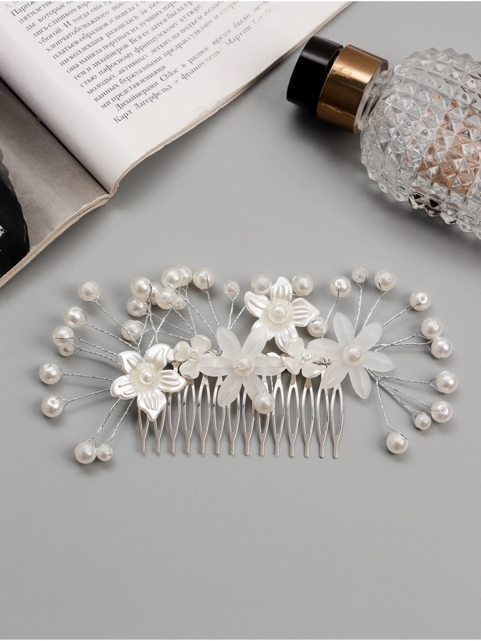 Гребень для волос "Эмилия" цветы шарики, 13х7 см, белый