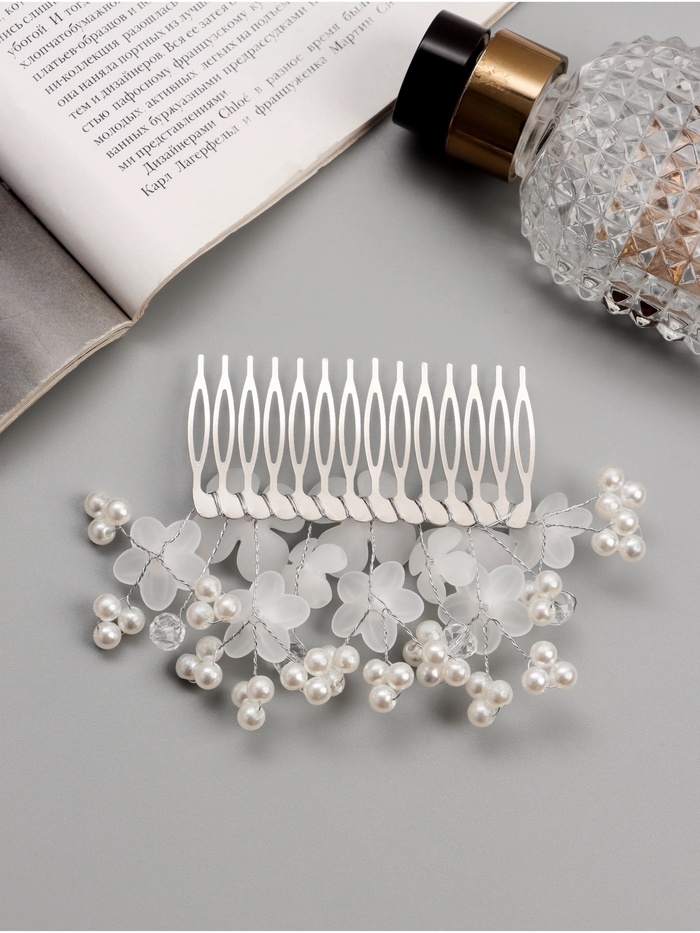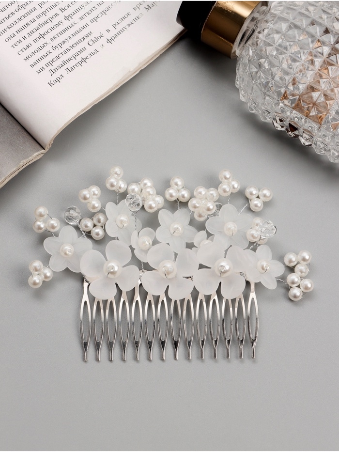 Гребень для волос "Эмилия" цветочный, 11х6 см, белый