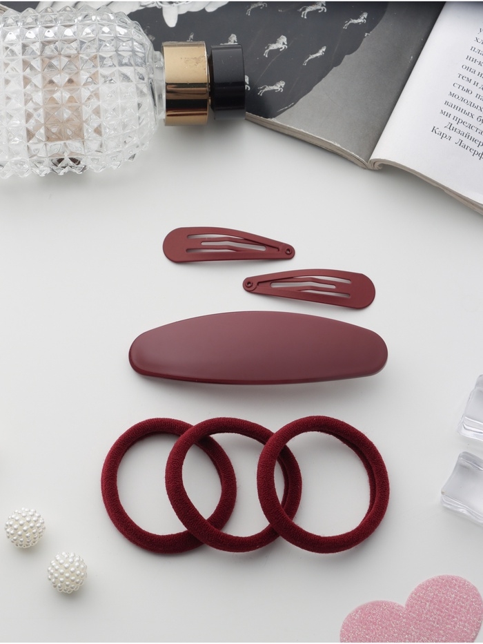 Набор для волос "Авиталь" (3 резинки 6 см, заколка-автомат 9 см, 2 невидимки 4,5 см) бордо 1069156