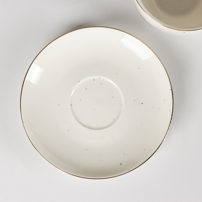 Чайная пара фарфоровая Доляна «Млечный путь», 2 предмета: чашка 220 мл, блюдце d=13,5 см, цвет белый в крапинку