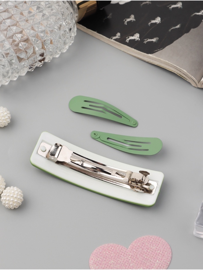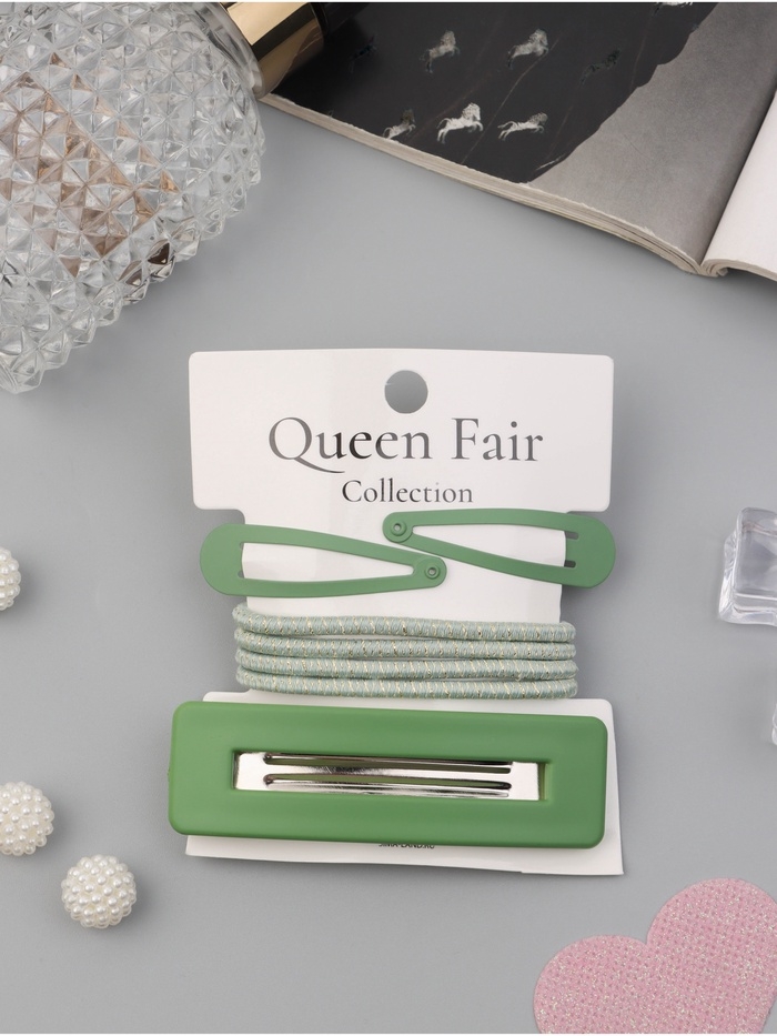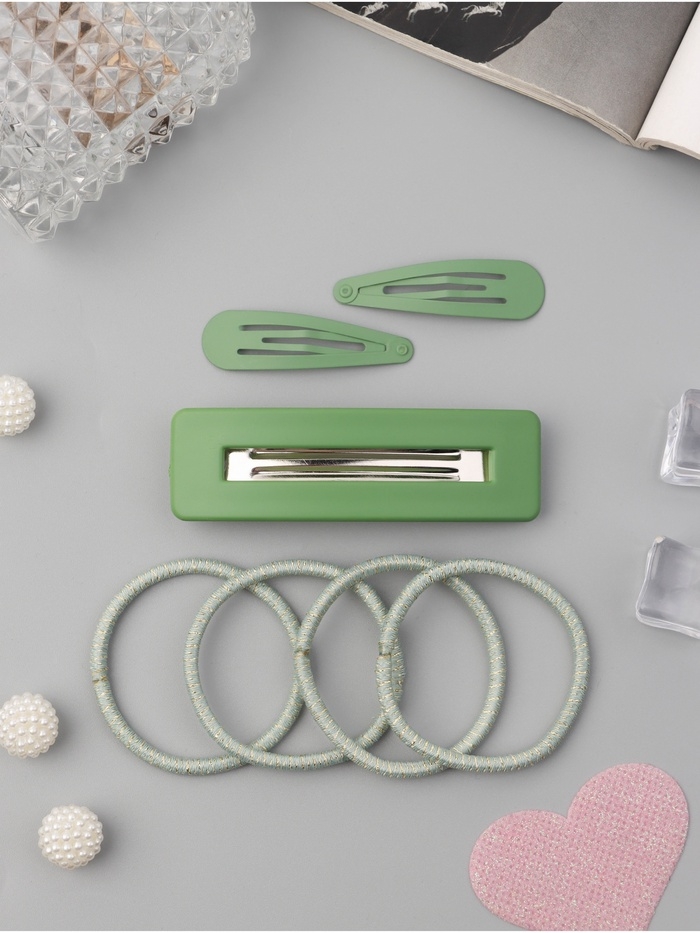 Набор для волос "Элери" (4 резинки 6,5см, автомат 8см, 2 невидимки 4,5см) зелёный
