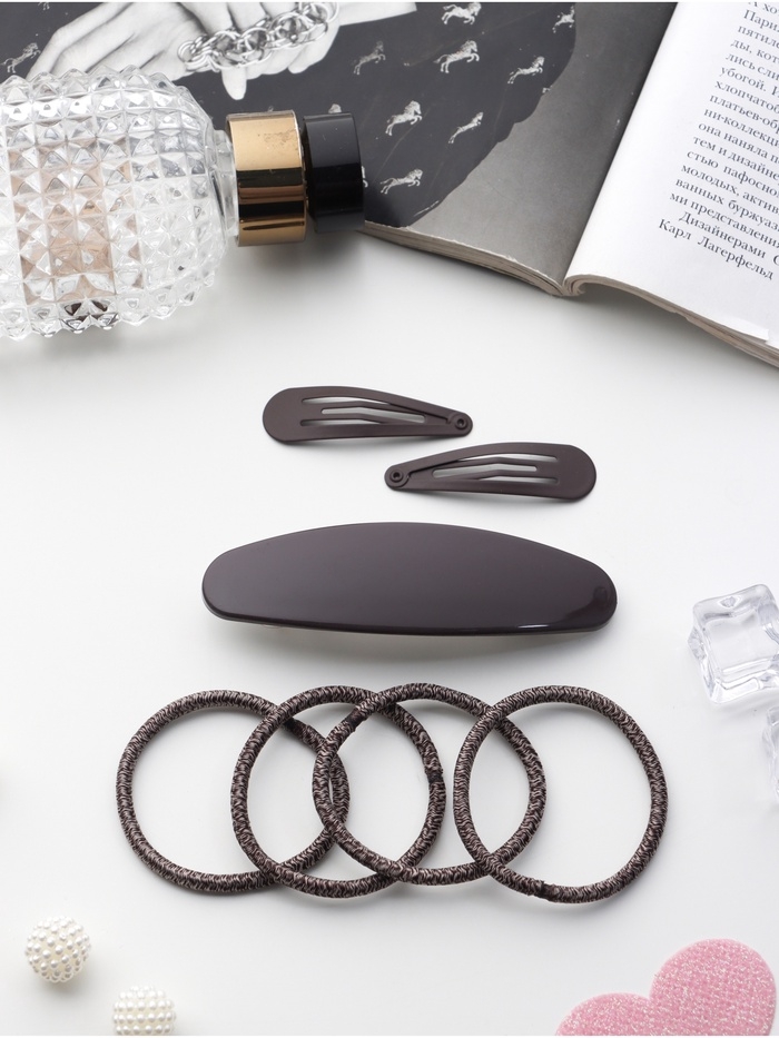 Набор для волос "Авиталь" (4 резинки 6,5см, автомат 9см, 2 невидимки 4,5см) коричневый