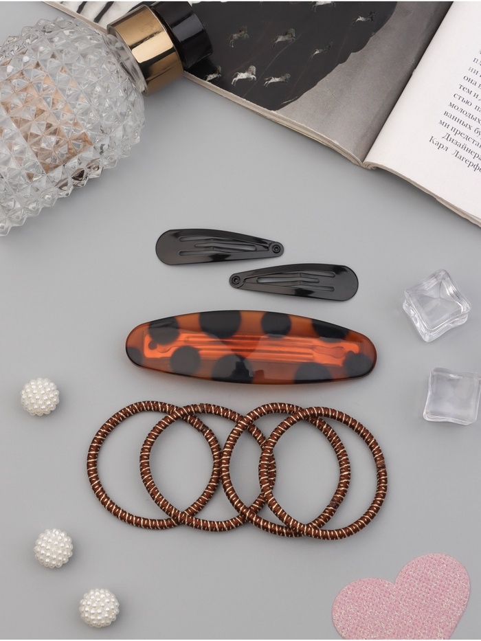 Набор для волос "Авиталь" (4 резинки 6,5см, автомат 8см, 2 невидимки 4,5 см) чёрн коричн