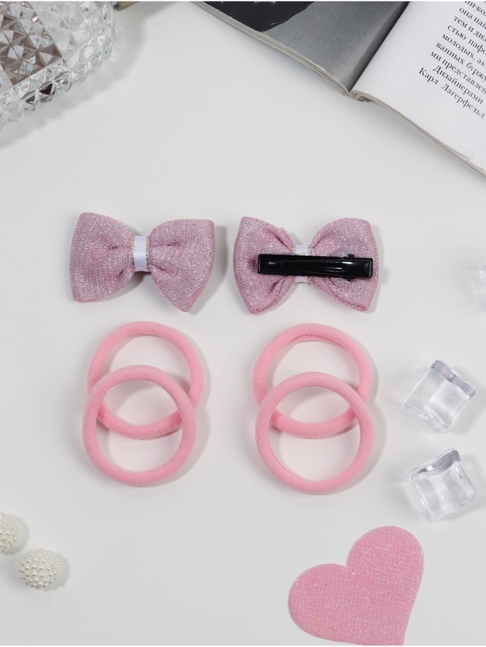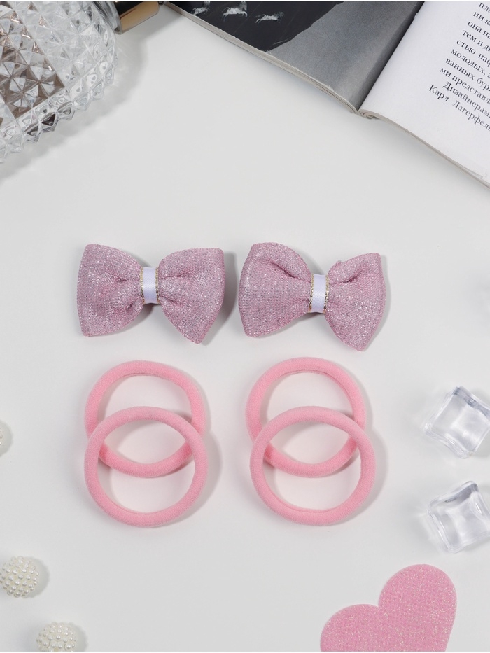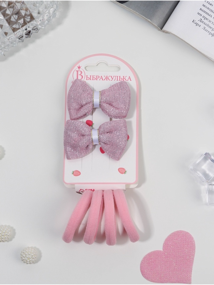 Набор для волос "Школьница галант" (4 резинки 3,5 см, 2 зажима 5,5 см) сияние, розовый