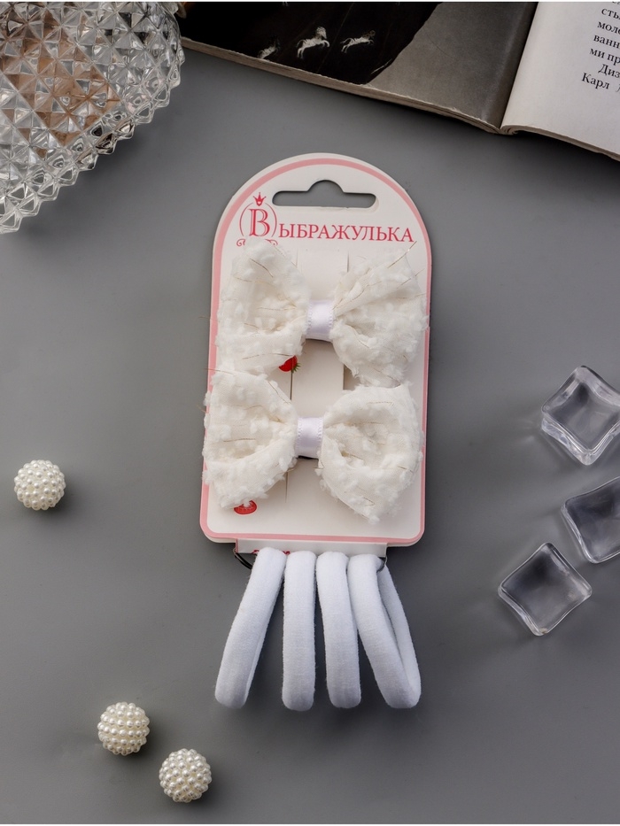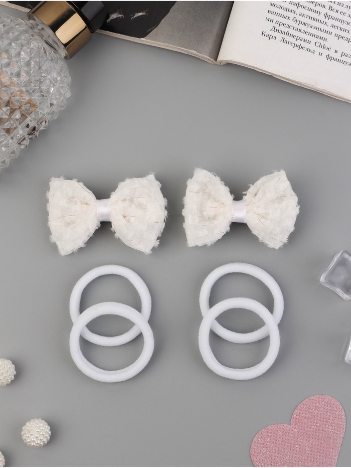 Набор для волос "Школьница галант" (4 резинки 3,5 см, 2 зажима 5,5 см) облачко, белый