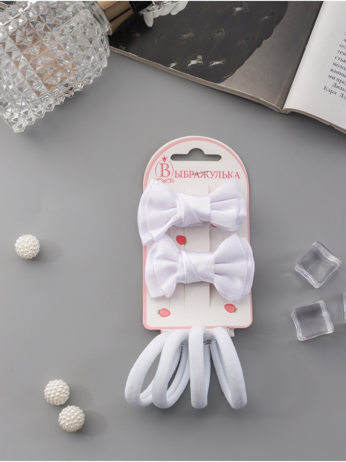 Набор для волос "Школьница галант" (4 резинки 3,5 см, 2 зажима 6 см) классик, белый