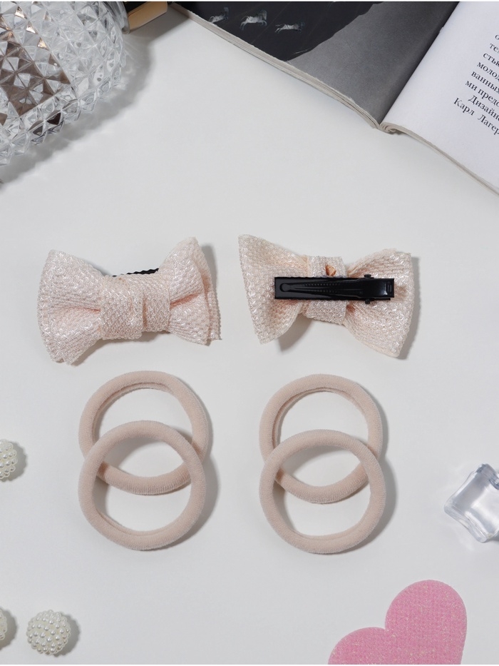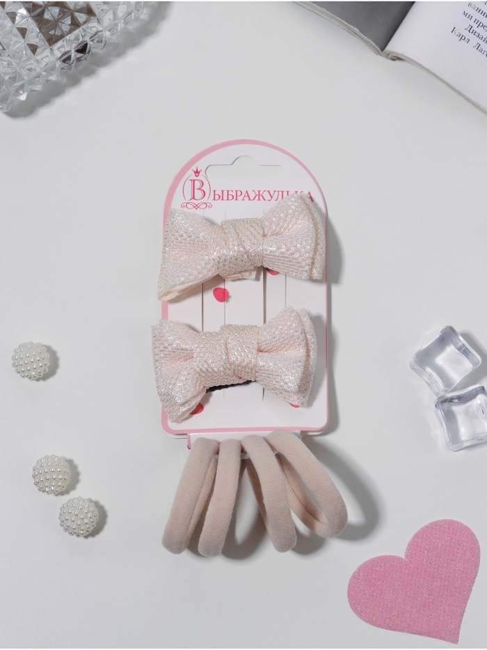 Набор для волос "Школьница галант" (4 резинки 3,5 см, 2 зажима 6 см) элит, бежевый