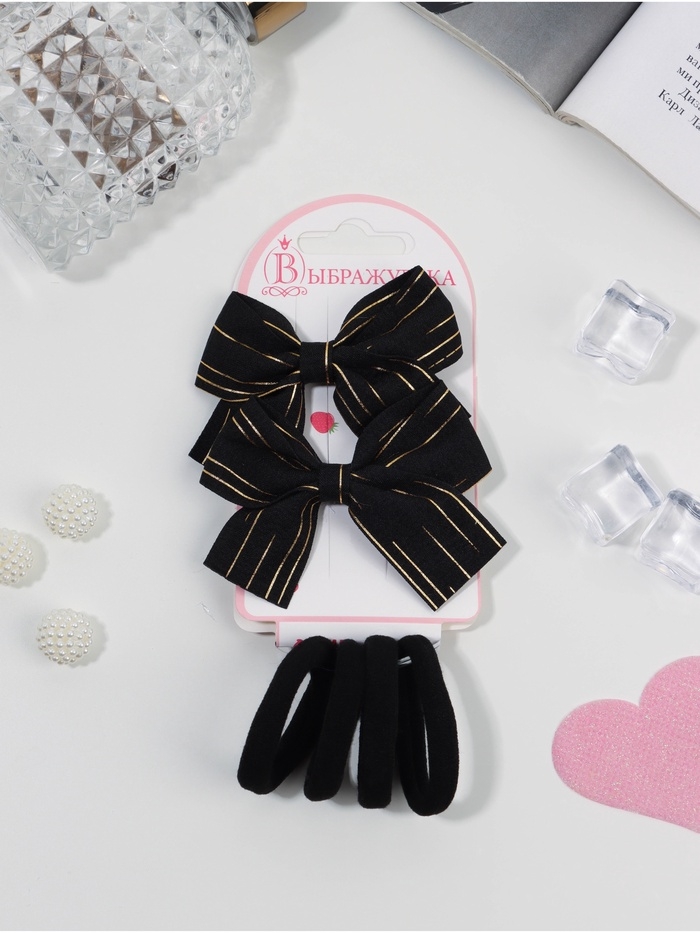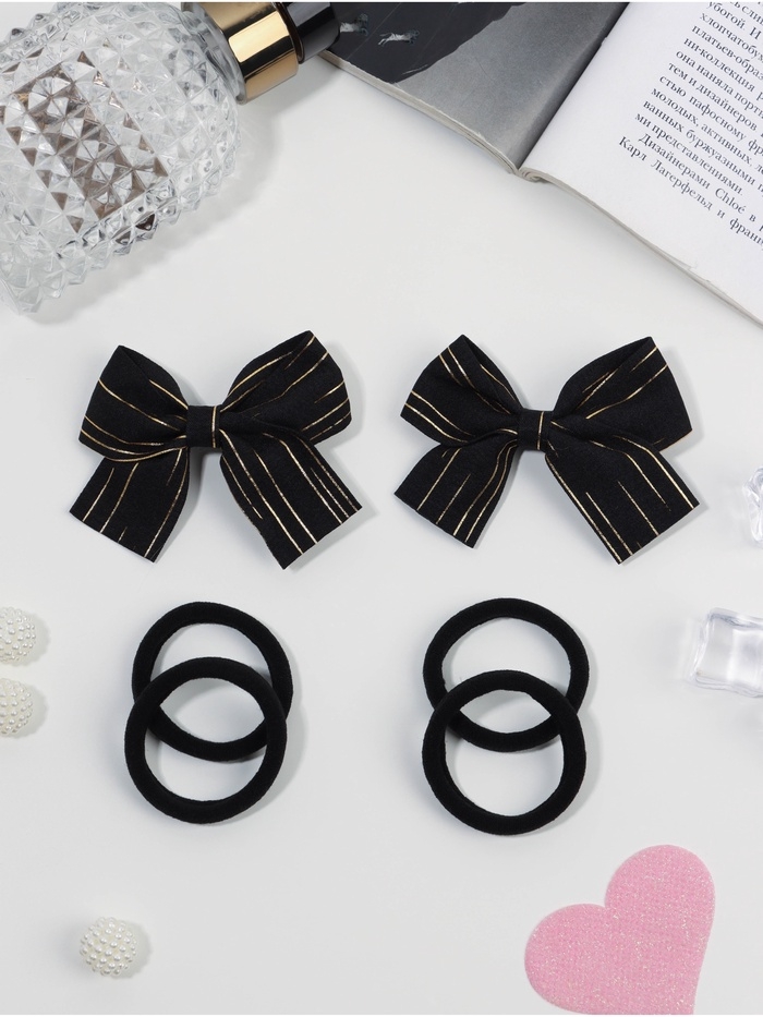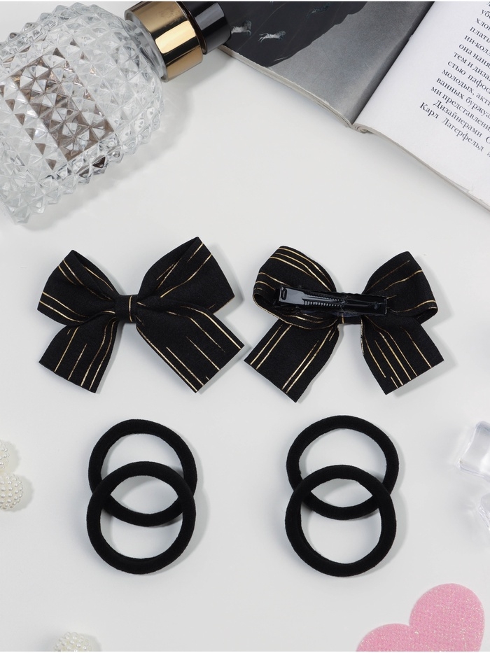 Набор для волос "Школьница галант" (4 резинки 3,5 см, 2 зажима 6,5 см) полосы, чёрный