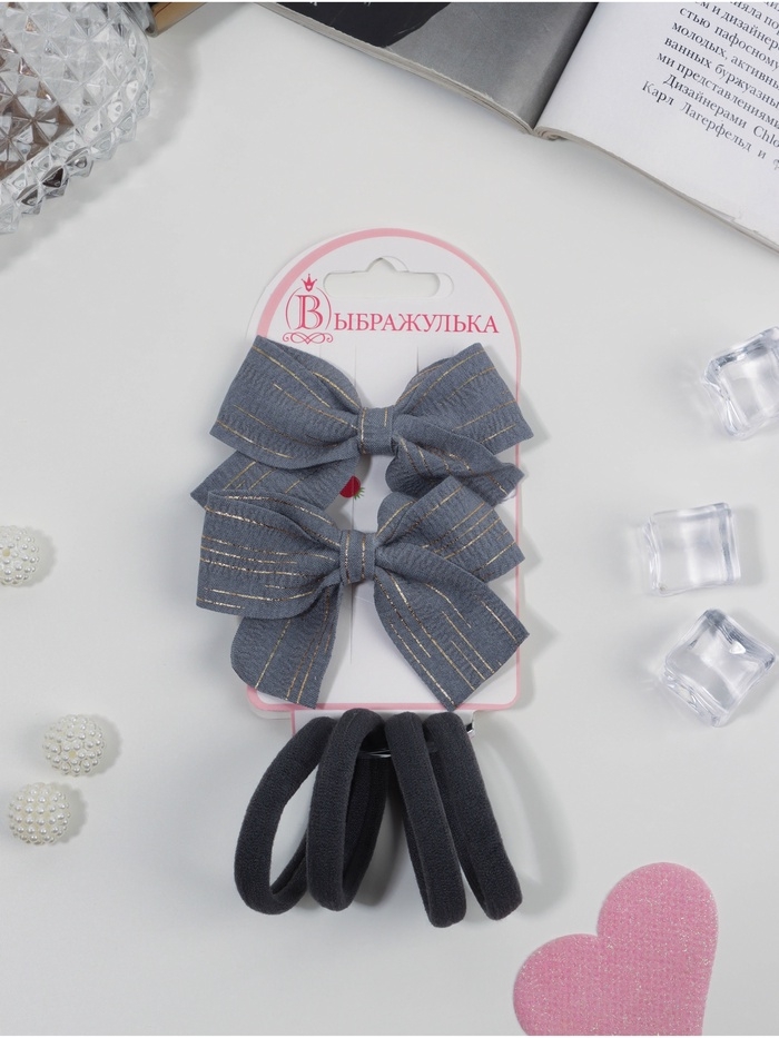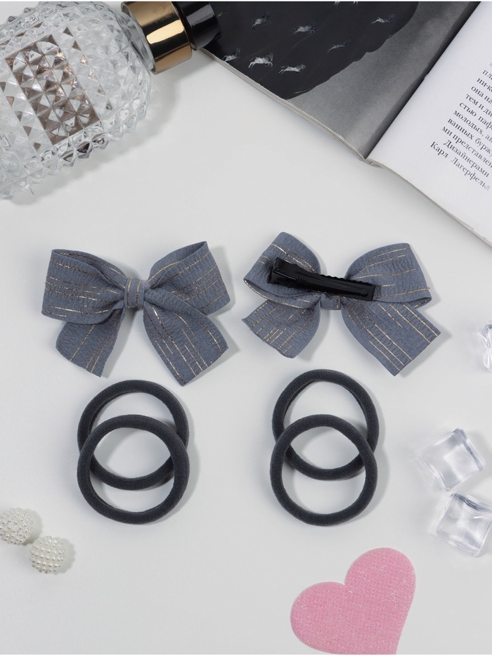 Набор для волос "Школьница галант" (4 резинки 3,5 см, 2 зажима 6,5 см) полосы, серый