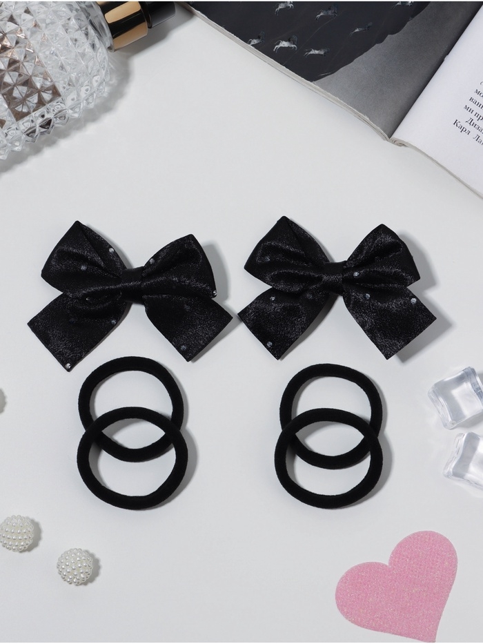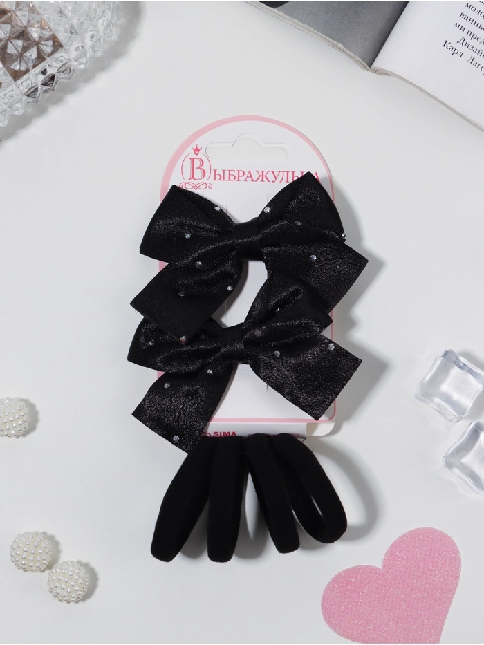Набор для волос "Школьница галант" (4 резинки 3,5 см, 2 зажима 6,5 см) блеск, чёрный