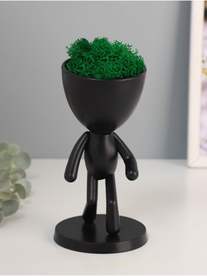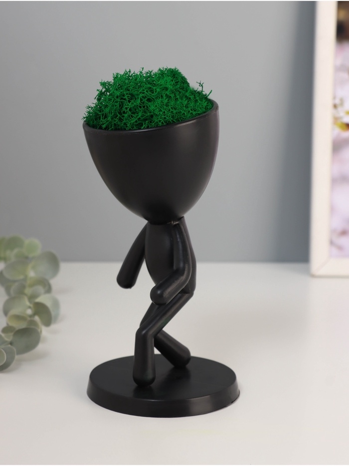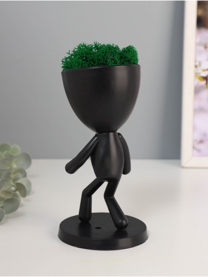 Кашпо пластиковое "Мистер Грин бежит" 16,5*8,5*8,5 см черный