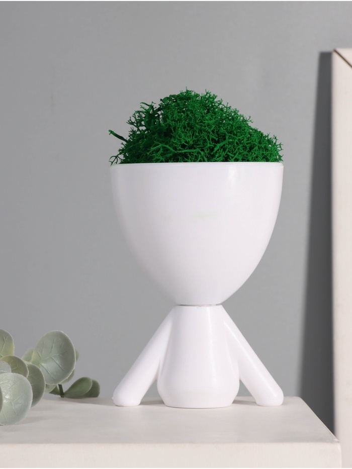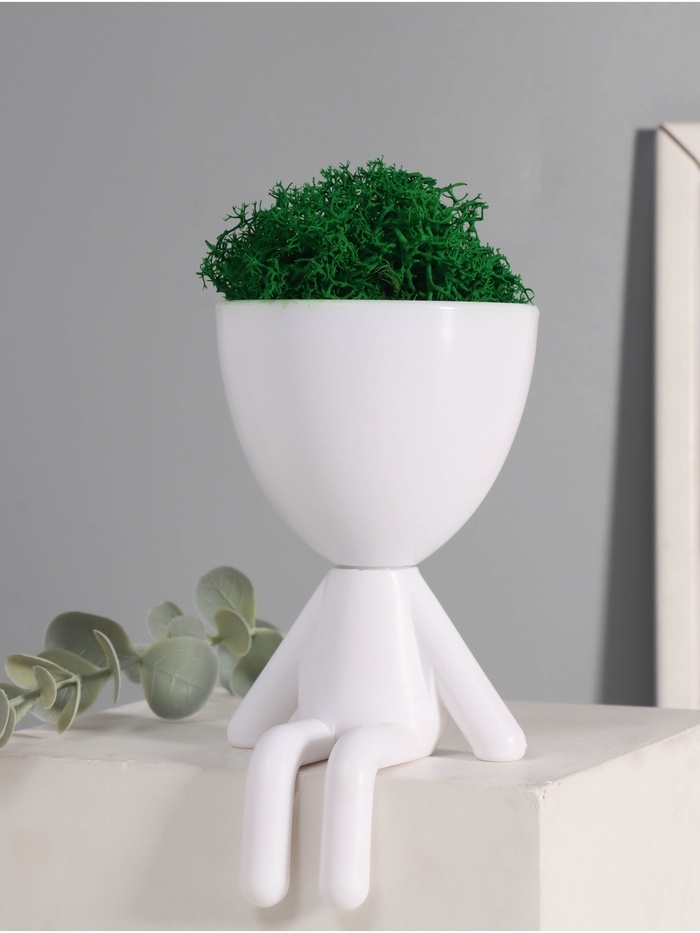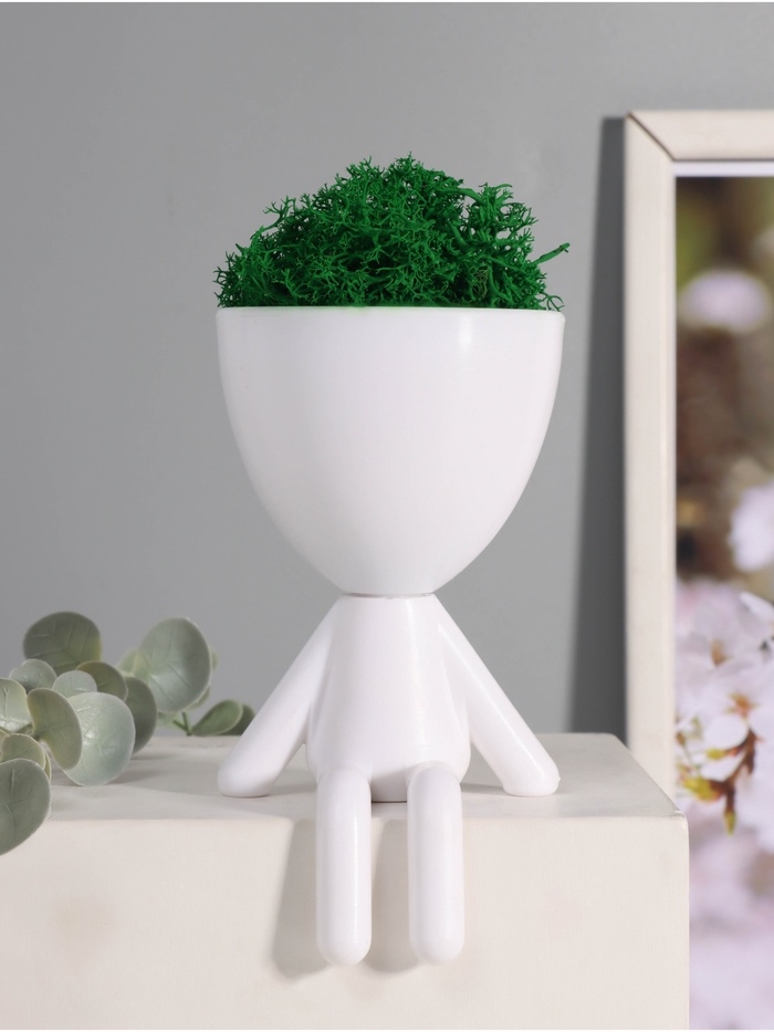 Кашпо пластиковое "Мистер Грин сидит" 13*9*7,3 см белый