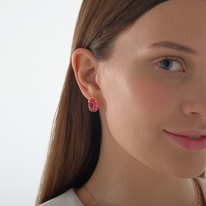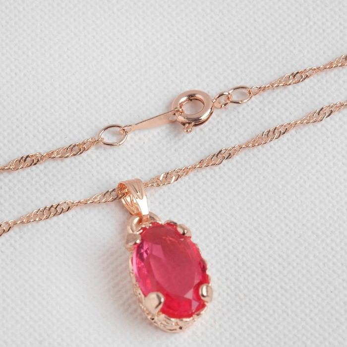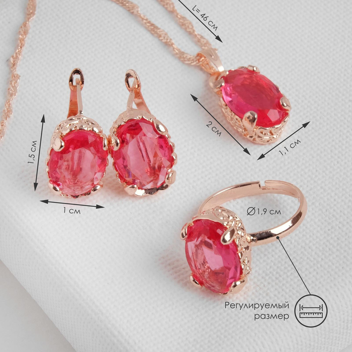 Гарнитур 3 предмета: серьги, кулон, кольцо безразмерное «Эдель» овал крупный, цвет розовый в золоте, 45 см