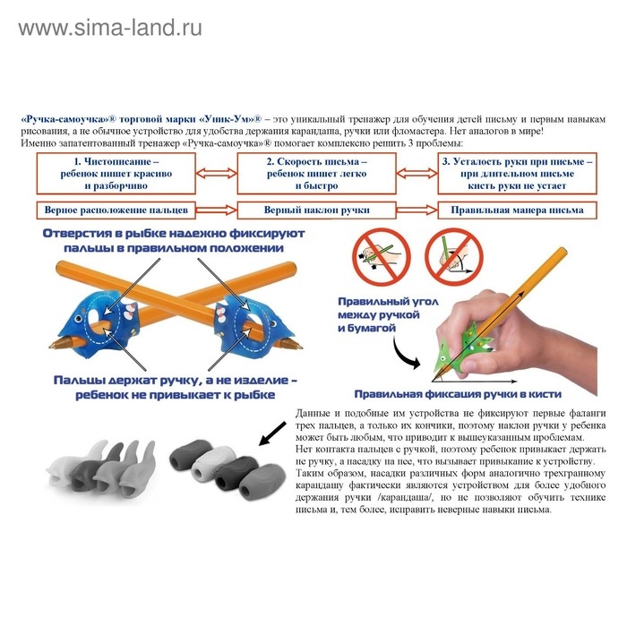 «Ручка-самоучка» – это не устройство для удобства держания пишущих принадлежностей, а уникальный тренажер для обучения детей письму.