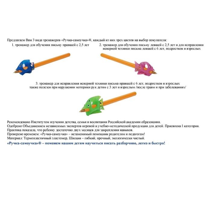 «Ручка-самоучка» – это не устройство для удобства держания пишущих принадлежностей, а уникальный тренажер для обучения детей письму.