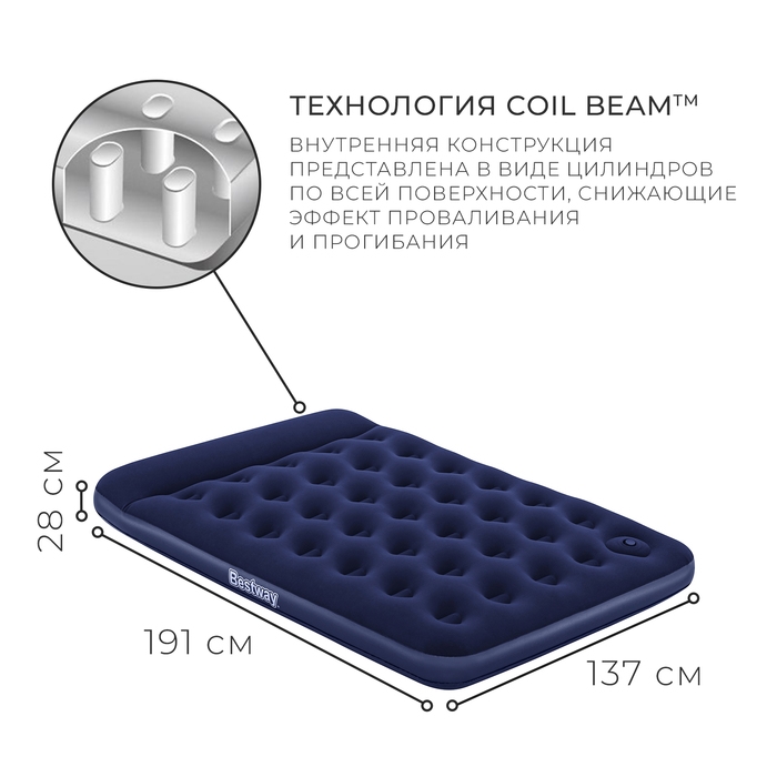 Матрас надувной Bestway Pavillo, 191×137×28 см, с встроенным ножным насосом, 67225