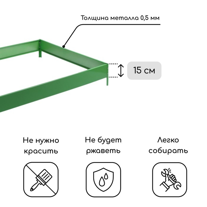 Грядка оцинкованная, 195 × 100 × 15 см, зелёная, Greengo