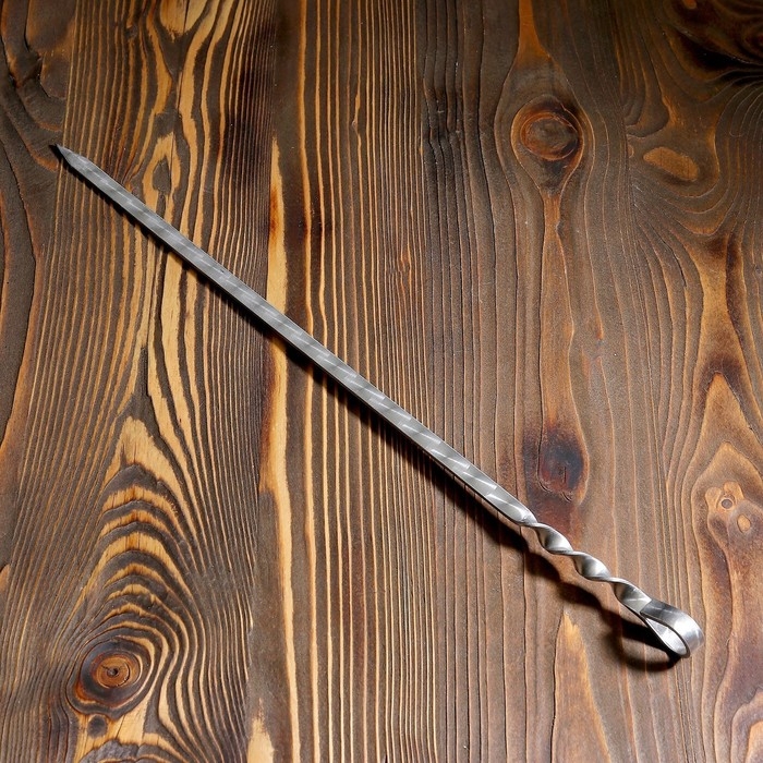 Шампур с деревянной ручкой, рабочая длина - 50 см, ширина - 10 мм, толщина - 3 мм с узором