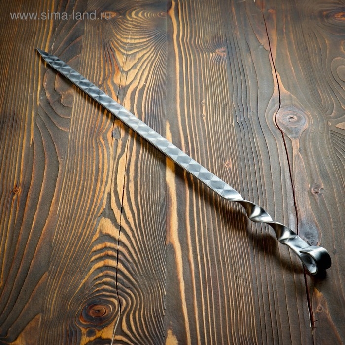 Шампур с деревянной ручкой, рабочая длина - 50 см, ширина - 10 мм, толщина - 3 мм с узором