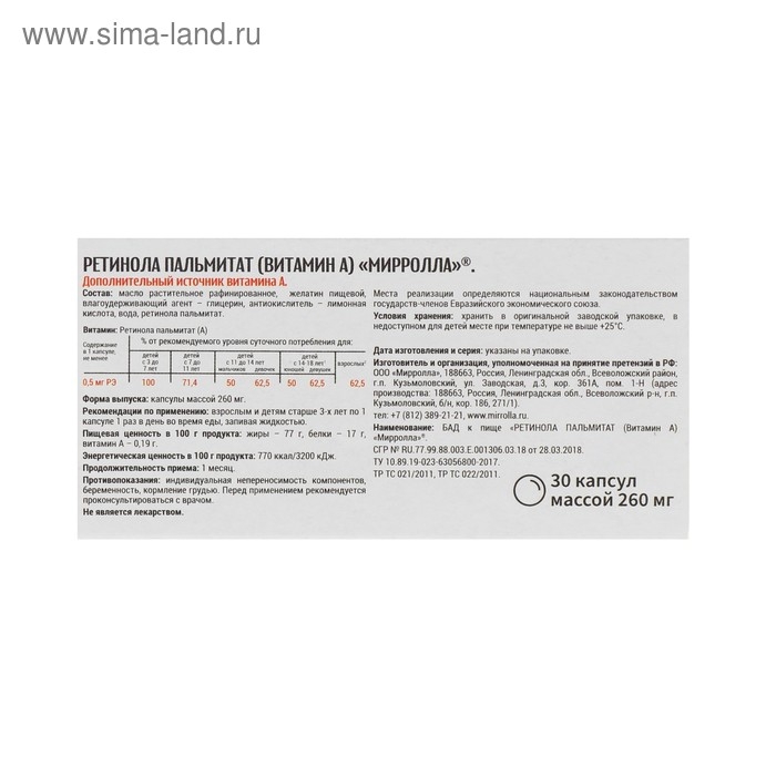 Витамин А, он же ретинол, недаром занимает первое место в «витаминном алфавите» — он принимает участие во всех основных процессах организма. Он участвует в формировании и поддержании красивой кожи, здоровых зубов, костей и мягких тканей. Дополнительный источник витамина А.