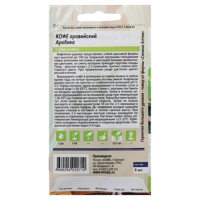 Семена цветов Кофе "Арабика ", ц/п, 5 шт.