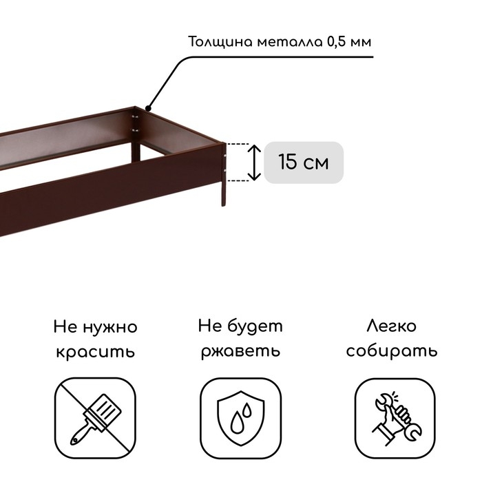 Грядка оцинкованная, 195 × 50 × 15 см, коричневая, Greengo