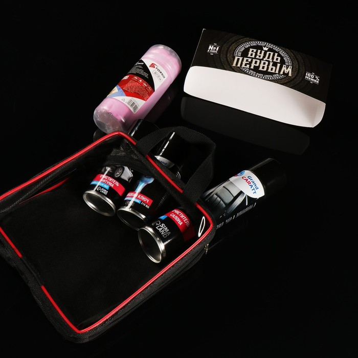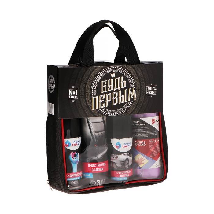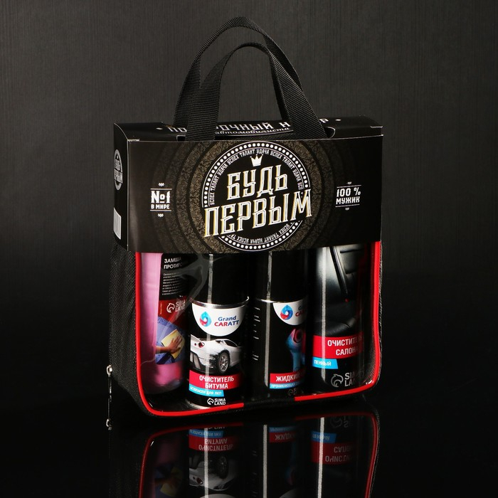 Подарочный набор для ухода за авто "Будь первым": очиститель салона 400 мл, очиститель битума 210 мл, смазка "жидкий ключ" 210 мл, замша протирочная