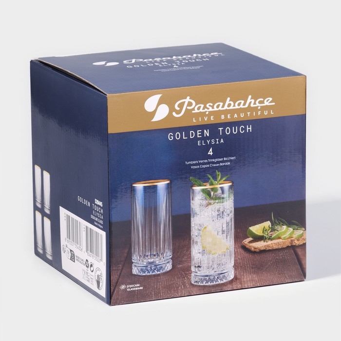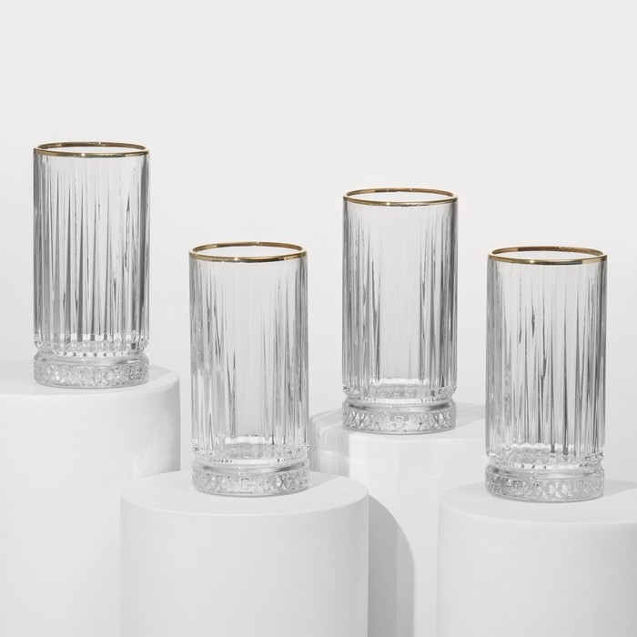 Набор стеклянных стаканов Elysia, 365 мл, 4 шт, с золотой каймой