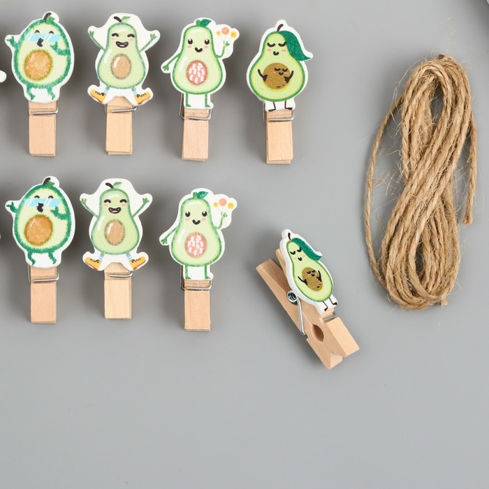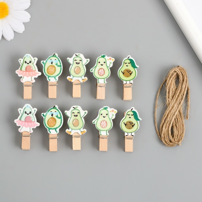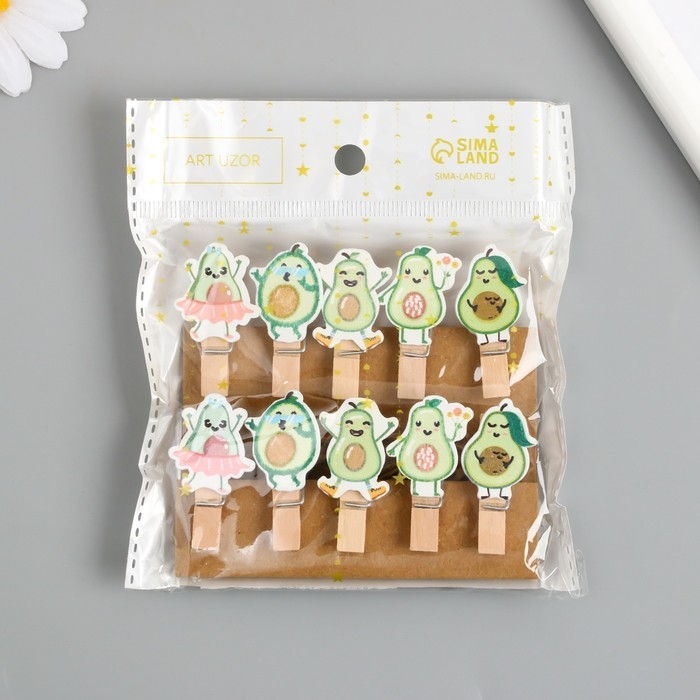 Декор для творчества дерево "Прищепка. Авокадо и танцы" набор 10 шт 3,9х2,3х1,2 см