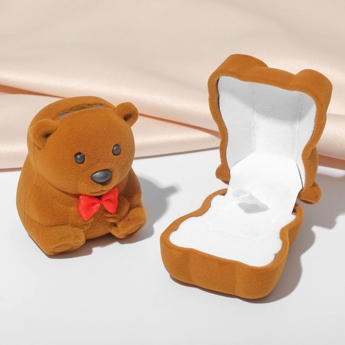 Футляр бархатный под кольцо «Медвежонок» с бантом, 4,6×5, цвет коричневый, вставка белая