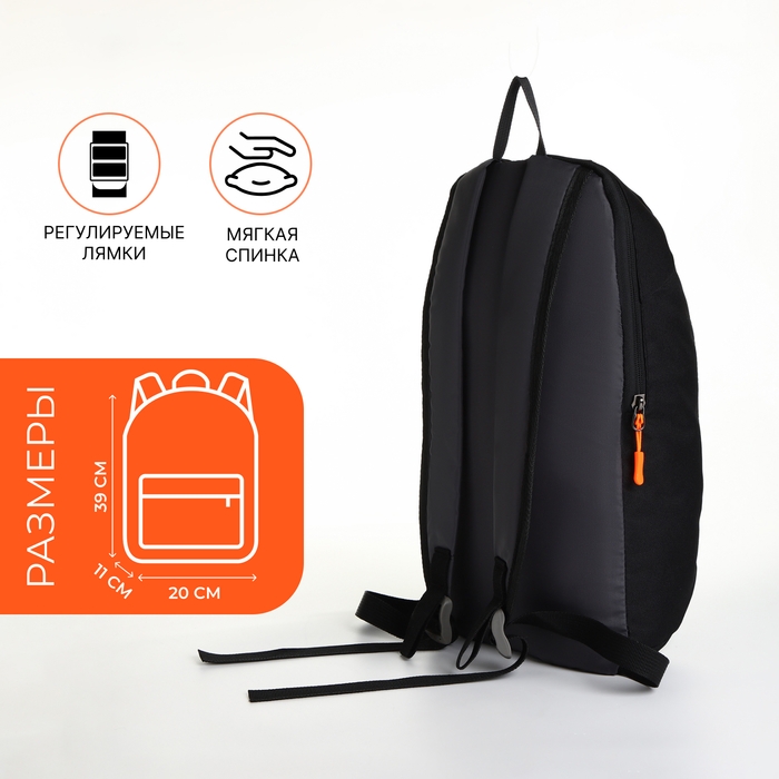 Рюкзак спортивный на молнии, TEXTURA, наружный карман, цвет чёрный