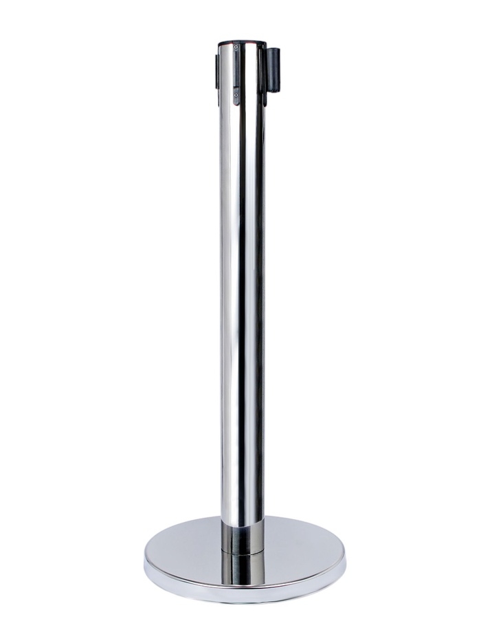 Стойка ограждения серебряная, с вытяжной лентой-180 см красная, белый, высота-90см, d- 6см, напольный d-32см