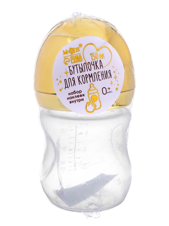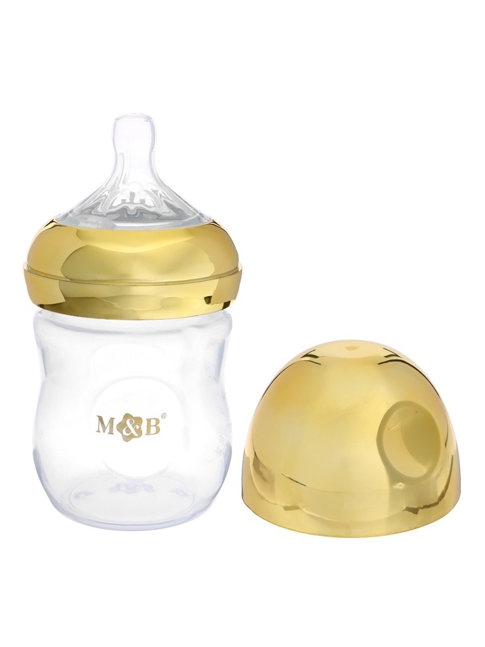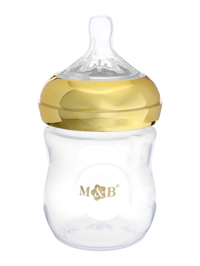 Бутылочка для кормления с наклейками «Золотой малыш» от 0 мес., 150 мл., цвет золотой, M&B