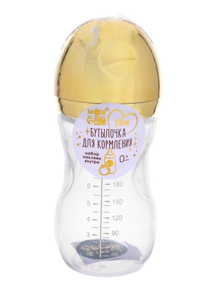 Бутылочка для кормления с наклейками «BOSS» от 0 мес., 250 мл., цвет золотой, M&B