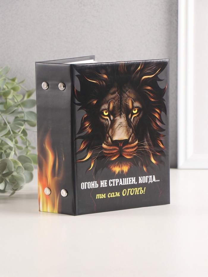 Фотоальбом на 96 фото 10х15 см "Лев и пламя" матовый с ламинацией 16,5х12х5,5 см