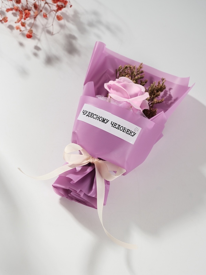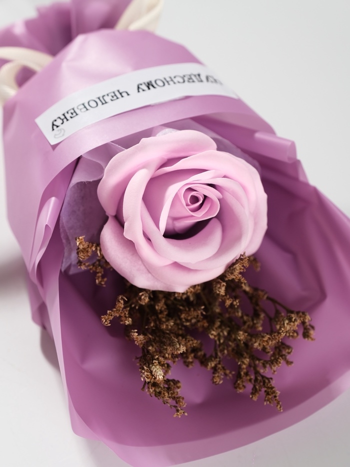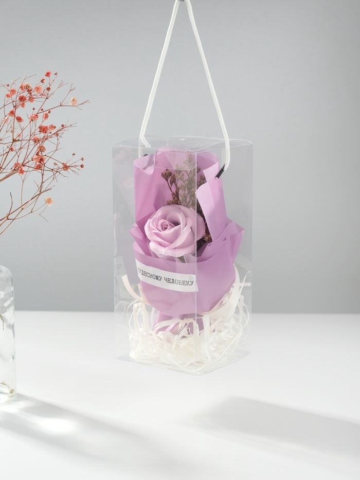 Букет из мыльных лепестков "Роза подарочная в коробке" фиолетовый 8,6х8,6х18,5 см