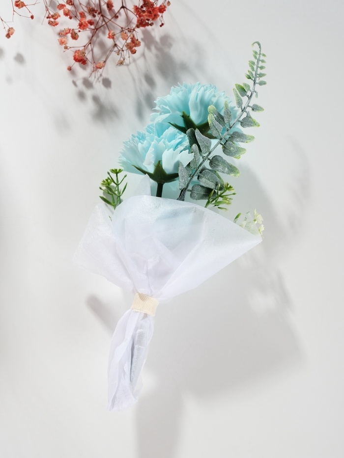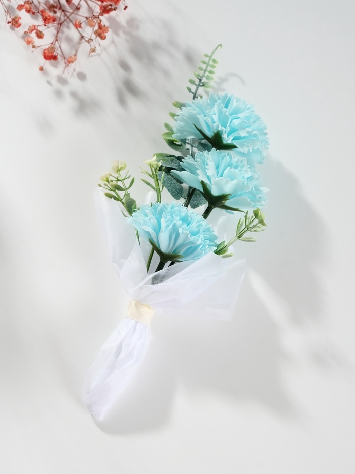 Букет из мыльных лепестков "Три гвоздики на подиуме" голубой 8х8х25 см